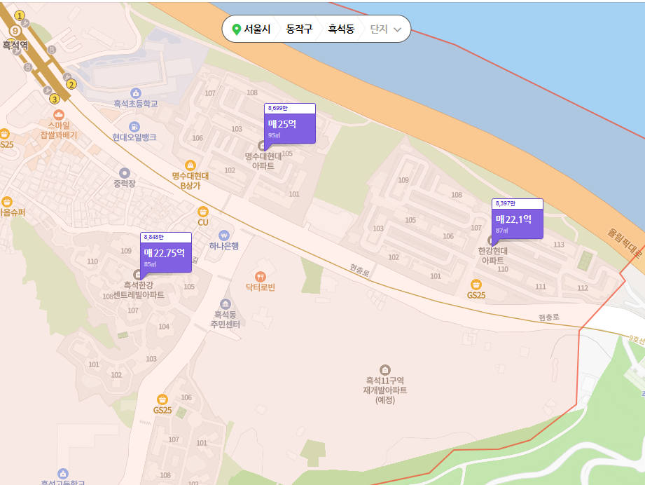흑석뉴타운 - 서초구 반포와 영등포구 여의도 사이의 지리적 입지가 장점