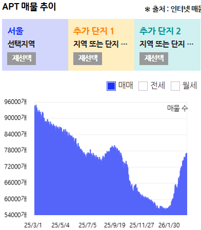 -양도차익이 커진 강남권 내 보유주택을 중과세 부활 전에 처분하려는 다주택자가 많아지면서 매물이 늘어남.