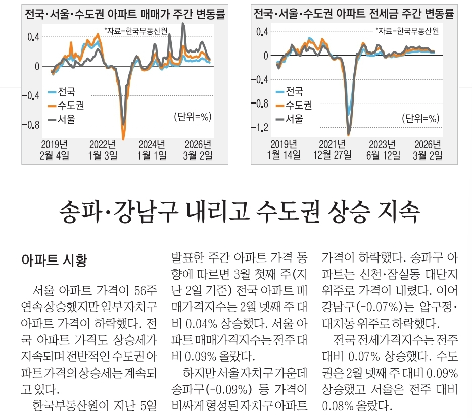 다주택자 매물로 송파, 강남구는 상승이 주춤
