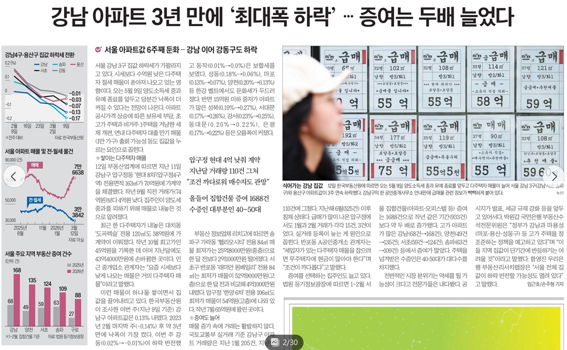 강남 아파트 3년 만에 최대폭 하락..증여는 두배 늘었다