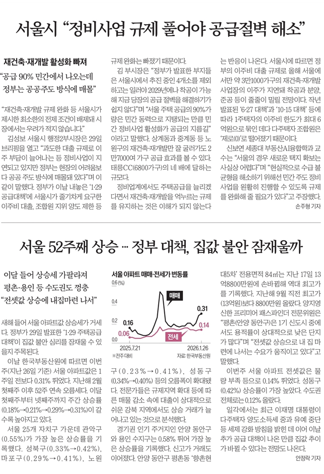 서울시는 재건축, 재개발 규제를 풀어달라. 민간 정비 사업 활성화가 공급의 지름길